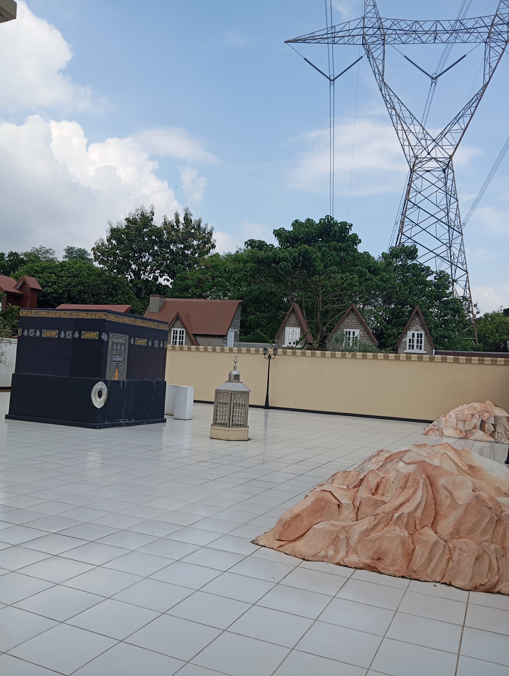 Jika dari kalian ada yang ingin pergi haji tetapi belum dikasih dan di panggil oleh Allah boleh disini dulu walaupun berbeda setidaknya bisa merasakan fibesnya berhaji dan menyentuh ka’bah buatan yang ada disini.