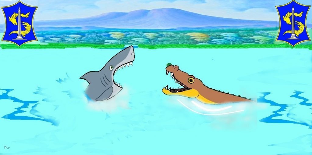Berkata Sura: “Baya, aku bosan dan capek dengan permusuhan kita. Hampir tiap hari kita berkelahi, tak ada yang menang tak ada yang kalah. Bagaimana damai saja dan saling berbagi wilayah kekuasaan?”