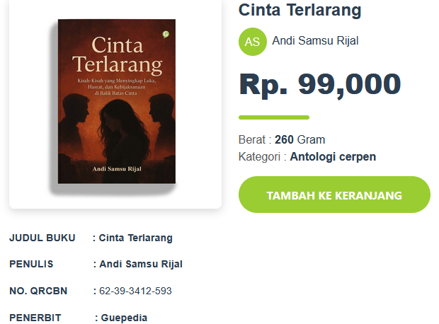 Buku kumpulan cerpen Cinta Terlarang ini dijual di toko Online.