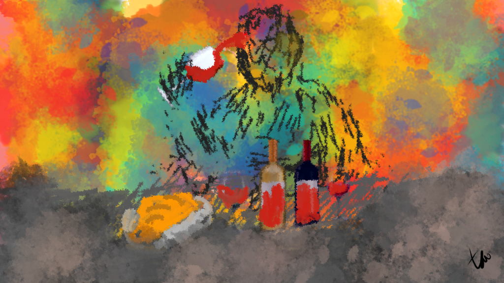 Tampaklah langit yang maha biru, menjadi kelam, karena mendung, menjadi tembaga, karena cahaya senja, dan menjadi hitam, karena malam. Perlahan tampak cahaya yang teramat lembut, adalah ribuan kunang-kunang yang berpesta pada gelap nuansa, langit tampak seakan kanvas yang teramat dekat dapat tersentuh. Kuraih pensil warna, seakan ada kekuatan yang mendorong di luar kemauan, maka tanganku terus bergerak, kugambar bintang, semula hanya satu – dua – tiga. Akhirnya langit menjadi gemerlap oleh cahaya yang tak terkira.