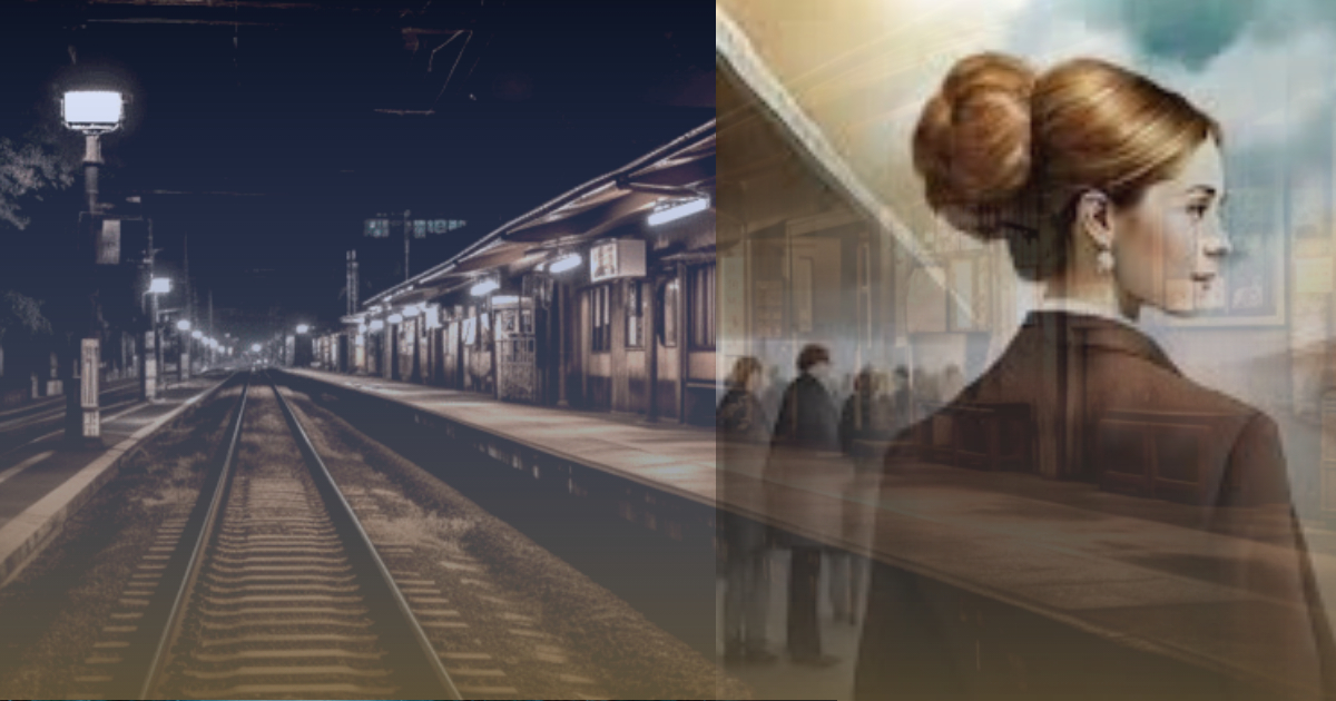 Di tengah malam yang gelap dan berangin, stasiun kereta tua di pinggiran kota berdiri angker di bawah langit mendung. Bangunan klasik yang megah ini tampak seperti hantu yang tersisa dari masa lalu, hanya dihiasi beberapa lampu yang berkelap-kelip di peron kosongnya. Hujan rintik-rintik mengguyur jalanan yang sepi, menciptakan suasana yang semakin suram.