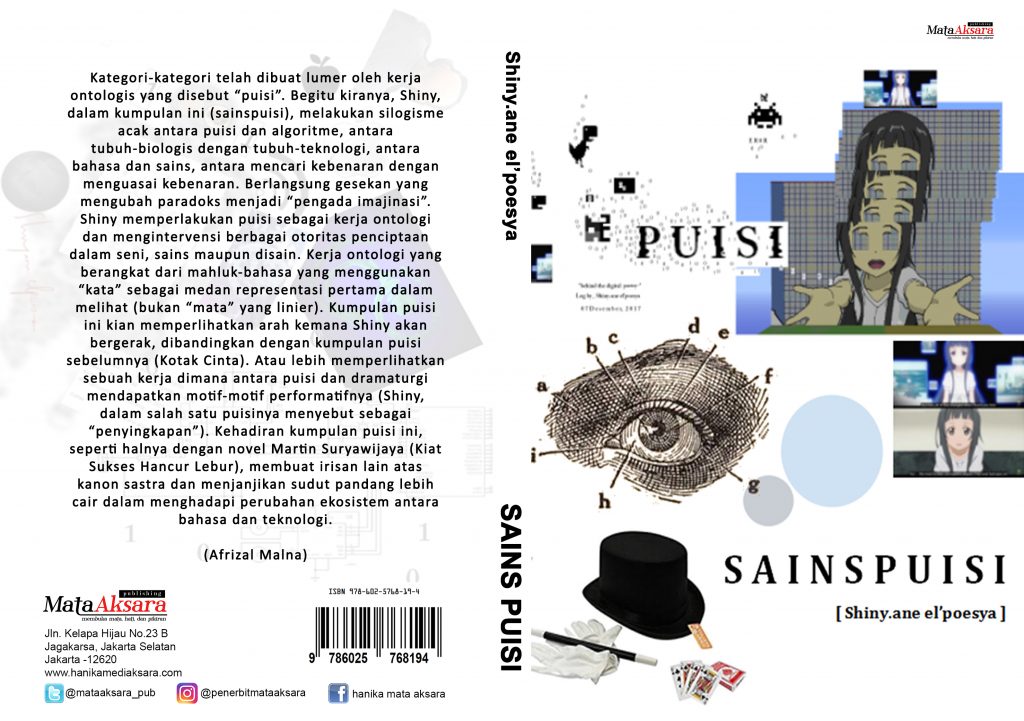 “Kategori-kategori telah dibuat lumer oleh kerja ontologis yang disebut “puisi”. Begitu kiranya, Shiny, dalam kumpulan ini (sainspuisi), melakukan silogisme acak antara puisi dan algoritme, antara tubuh-biologis dengan tubuh-teknologi, antara bahasa dan sains, antara mencari kebenaran dengan menguasai kebenaran. Berlangsung gesekan yang mengubah paradoks menjadi “pengada imajinasi”. Shiny memperlakukan puisi sebagai kerja ontologi dan mengintervensi berbagai otoritas penciptaan dalam seni, sains maupun disain. Kerja ontologi yang berangkat dari mahluk-bahasa yang menggunakan “kata” sebagai medan representasi pertama dalam melihat (bukan “mata” yang linier). Kumpulan puisi ini kian memperlihatkan arah kemana Shiny akan bergerak, dibandingkan dengan kumpulan puisi sebelumnya (Kotak Cinta). Atau lebih memperlihatkan sebuah kerja dimana antara puisi dan dramaturgi mendapatkan motif-motif performatifnya (Shiny, dalam salah satu puisinya menyebut sebagai “penyingkapan”). Kehadiran kumpulan puisi ini, seperti halnya dengan novel Martin Suryawijaya (Kiat Sukses Hancur Lebur), membuat irisan lain atas kanon sastra dan menjanjikan sudut pandang lebih cair dalam menghadapi perubahan ekosistem antara bahasa dan teknologi.” (Afrizal Malna)