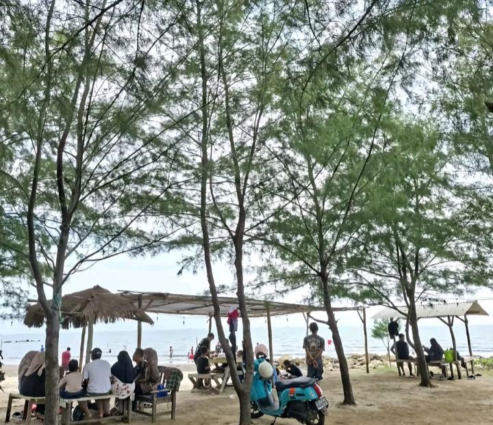 Destinasi yang terletak di Desa Balongan ini menjadi magnet bagi pelancong, berkat deretan pohon cemara laut yang rimbun, menciptakan suasana teduh dan sejuk sehingga pengunjung bisa bersantai tanpa perlu khawatir terik matahari menyengat. Selain udaranya yang segar, pantai ini dikenal luas karena keberadaan berbagai instalasi estetik yang dirancang khusus sebagai latar swafoto bagi para pencinta media sosial.