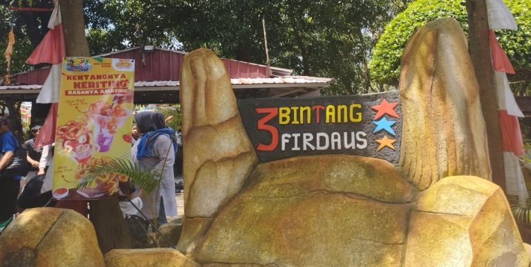 Wisata ini dinamakan 3 Bintang Firdaus karena memiliki 3 unsur gabungan antara taman/spot foto, wahana/kebun binatang mini, dan kolam renang. Layaknya “Firdaus” (surga).